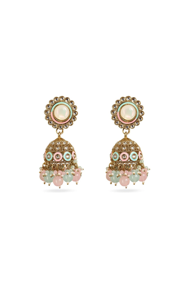 Exuding elegance and finishing with perfection, this multi-color alloy earring is inscribed alloy material with gold plated, stones meenakari, and beads work which exudes feminine charm.